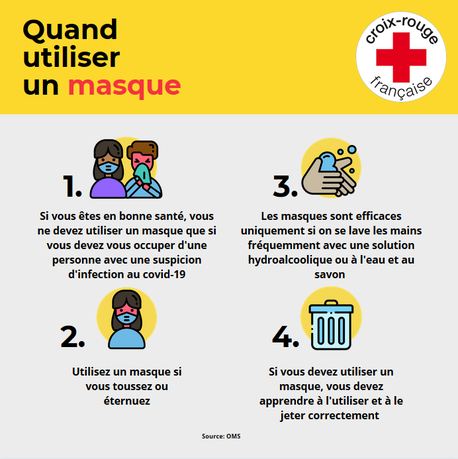 La propagation et la réponse au COVID-19 ont été accompagnées d'une « infodémie » - surabondance d'informations – massive, qui permet difficilement aux gens de trouver des sources et des conseils fiables lorsqu'ils en ont besoin. Fidèle à son rôle d’acteur de la prévention des risques sanitaires, la Croix-Rouge française déconstruit les idées reçues et rappelle les bons gestes à adopter. Source : https://www.croix-rouge.fr/Actualite/Coronavirus-COVID-19/COVID-19-halte-aux-idees-recues-2348